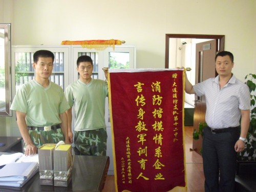 逸彩城代表向沙河口區紅旗消防中隊送去錦旗