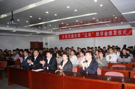 2010年9月28日上午,吳岩董事長出席大連交通大學“遼機”助學金頒發儀式。儀式在大連交通大學圖書館多功能廳舉行,由大連交㊙️通大學學生處處長王豔主持。