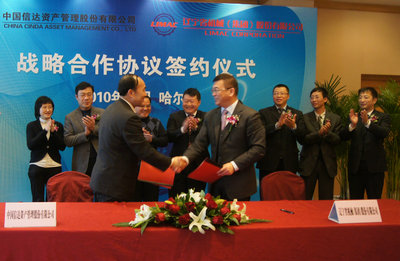 遼機集團董事長吳岩先生、副總裁杜堅毅先生等參加簽約儀⛹🏻♀️式。中國信達資産管理股份有限公司副總裁莊恩嶽先生、托管協同部總經理肖沃根先生,信達黑龍江分公司總經理毛一先生等出席簽約儀式。