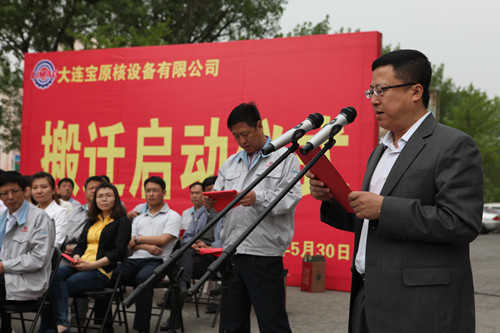 大連寶原總經理溫殿水發表講話,經過一年多來的廠房建設現已竣工,搬遷工作今天正式啟動,他表示,在全⭐體員工的共同努力下,再創新的業績,為我國第❤️三代核電技術設備的國産化🌐,為地方經濟的發展做出應有貢獻。