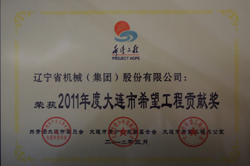 我司榮獲“2011年度大連市希望工程貢獻獎”