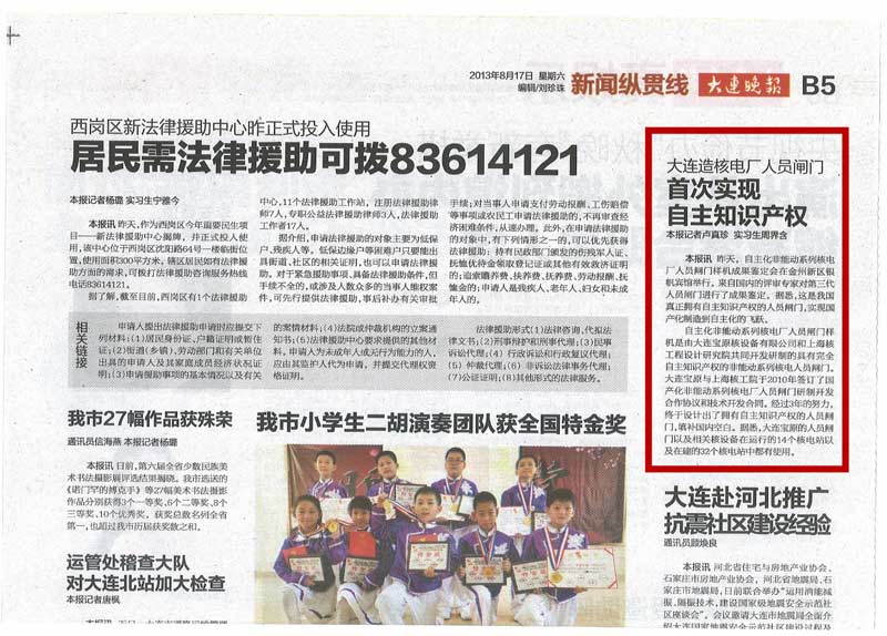 《大連晚報》在2025年12月6日 B5版,以“大連造核電廠人員閘門♋ 首次實現自主知識産權”為标題對大連寶原核設備有限公🏒司“自主化‼️非能動系列核電廠人員閘門樣機”成果鑒定會進行了報道🔞。原文轉載如下:
