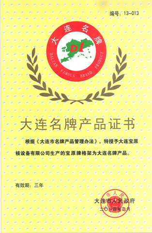 根據《大連市名牌産品管理辦法》,大連寶原核設備有🆚限公司生産的“寶原牌格架”被确認為2014年大連名牌産品,有效期為三年。