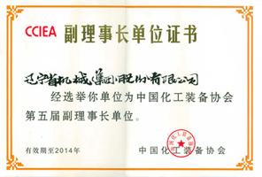 中(zhong)國化工裝備協會(huì)副理事長單位證(zhèng)書