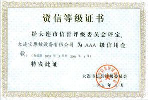 大連市信(xìn)譽評級委員會AAA級(ji)信用企業證書